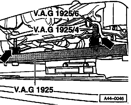 Note: If there are clearance problems when adjusting the special tool VAG 1925, do not attach adapters VAG 1925/4 and VAG 1925/6 until later.