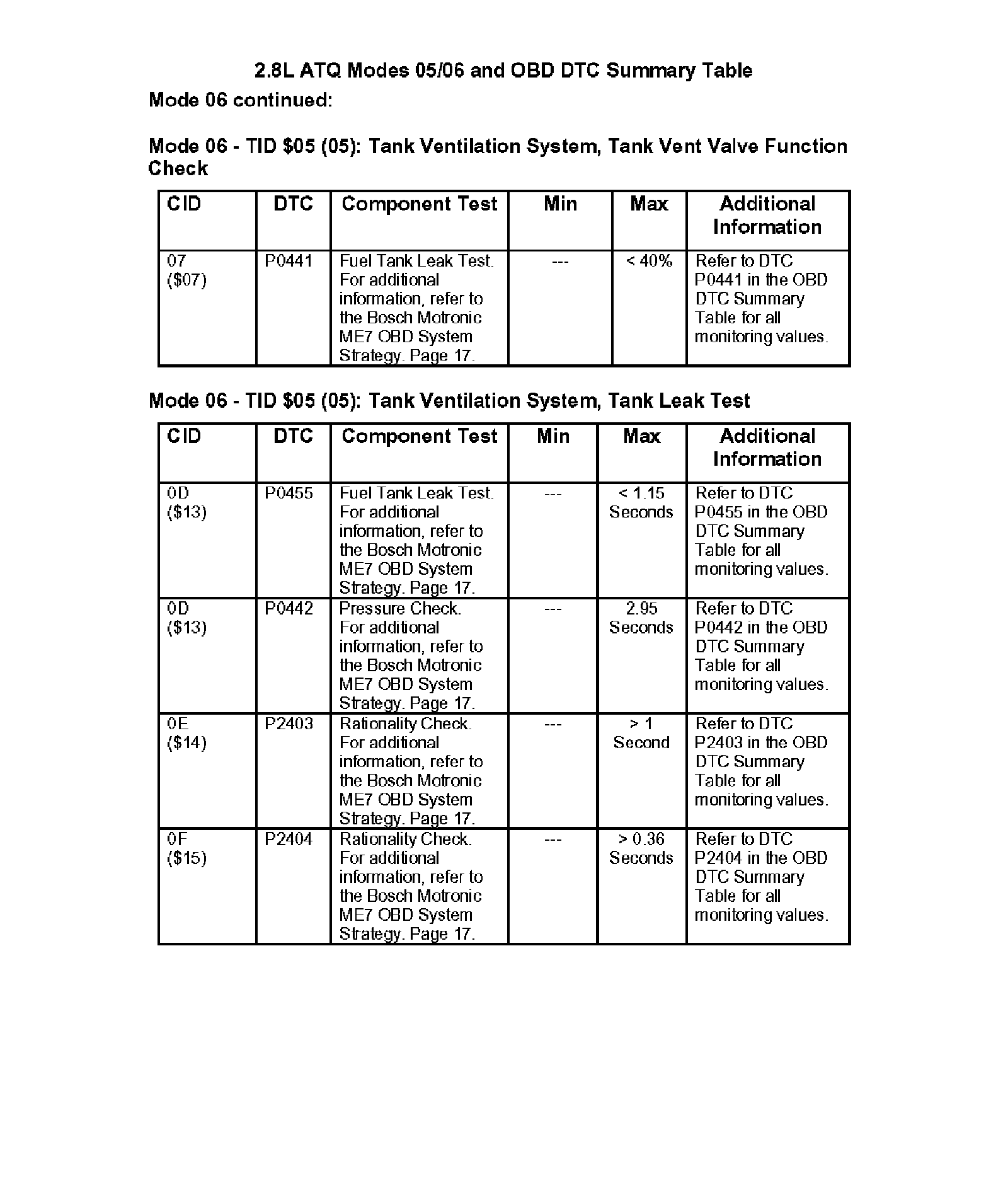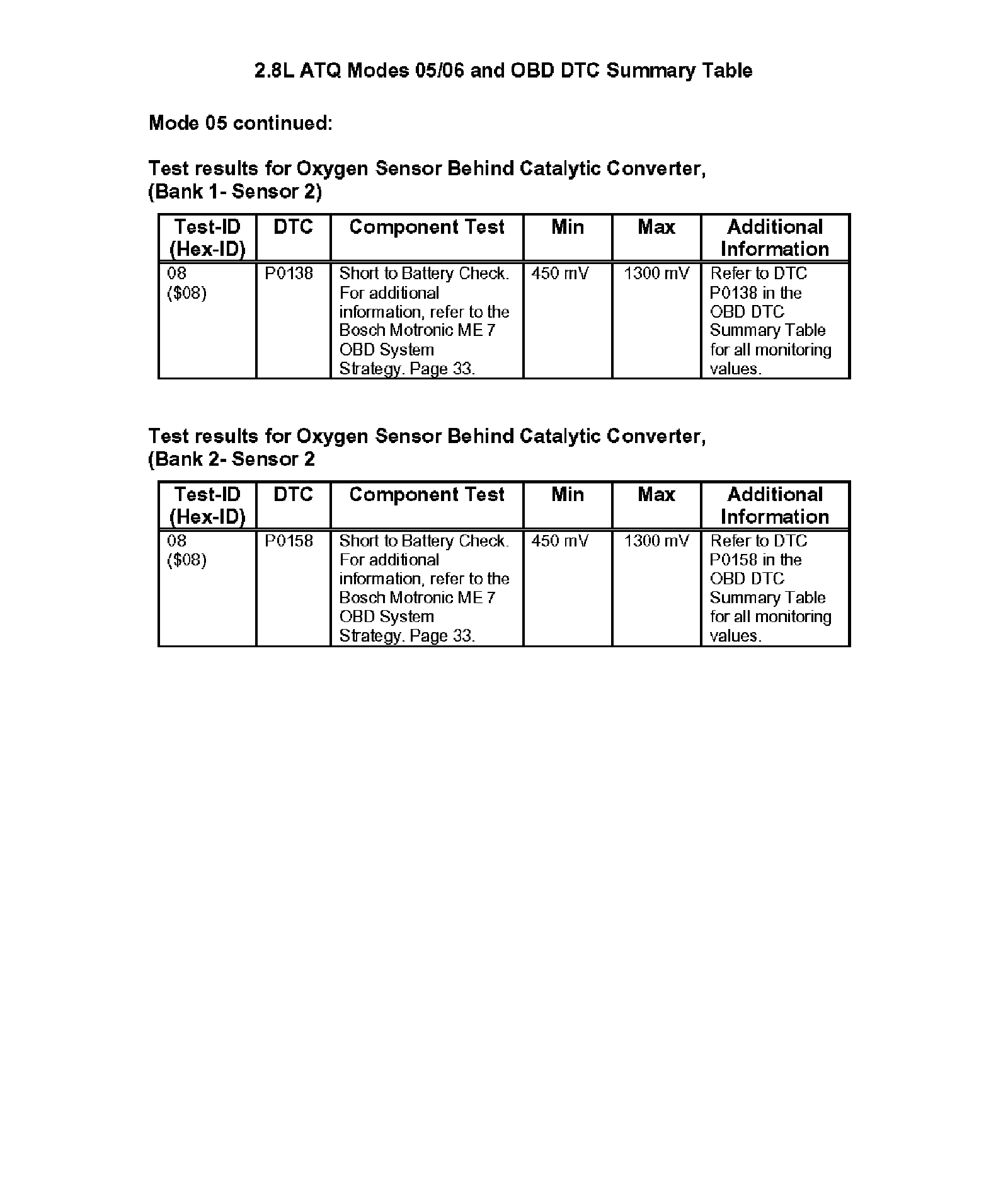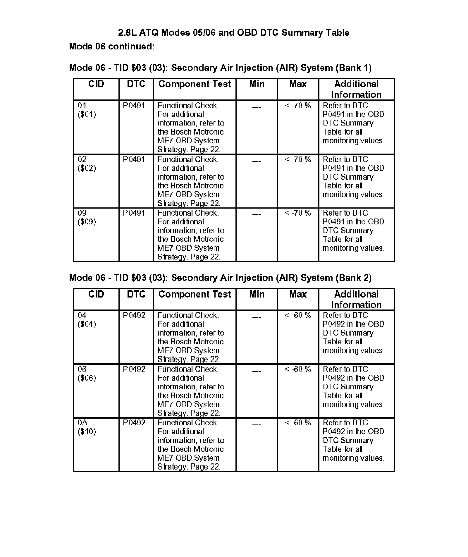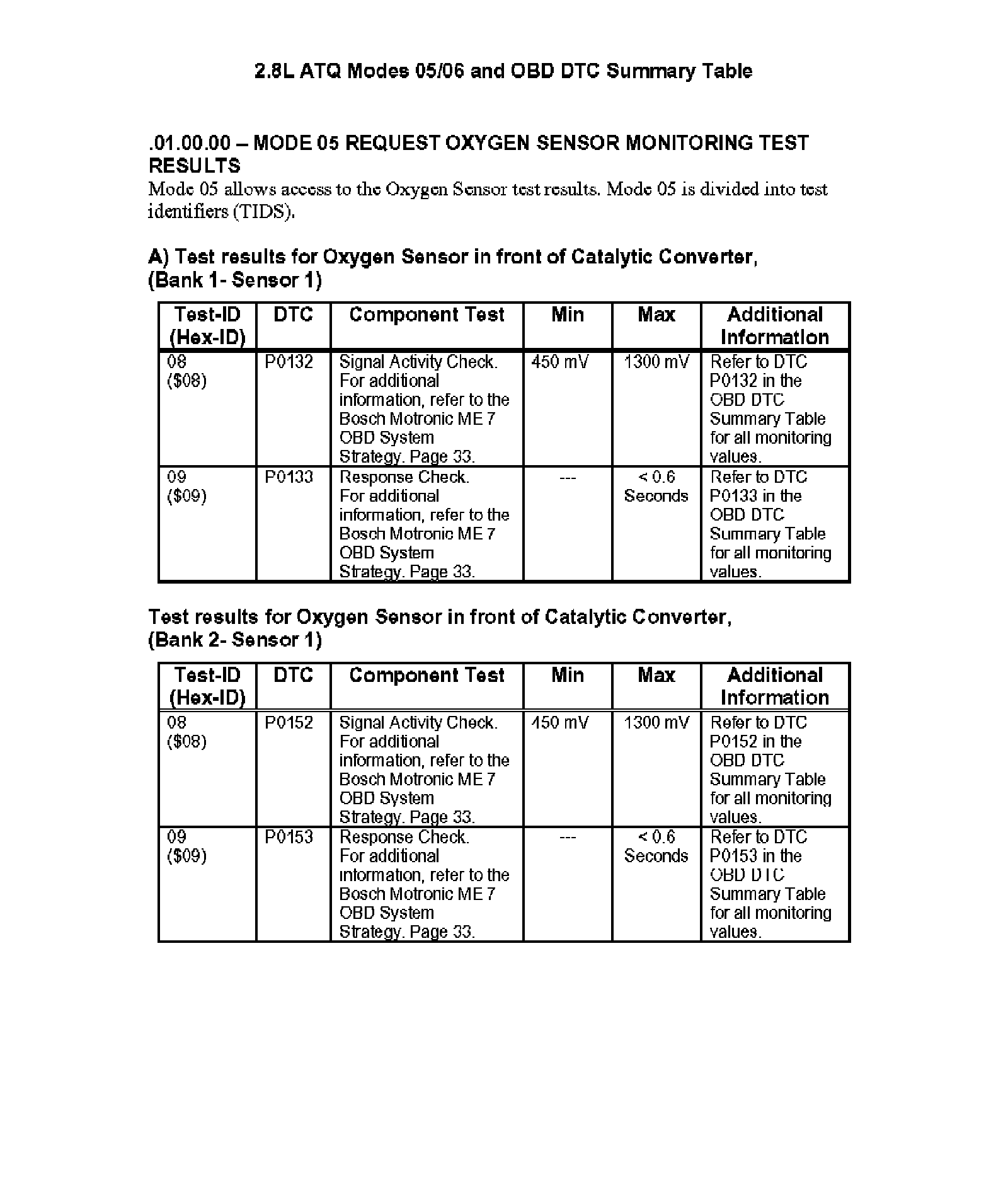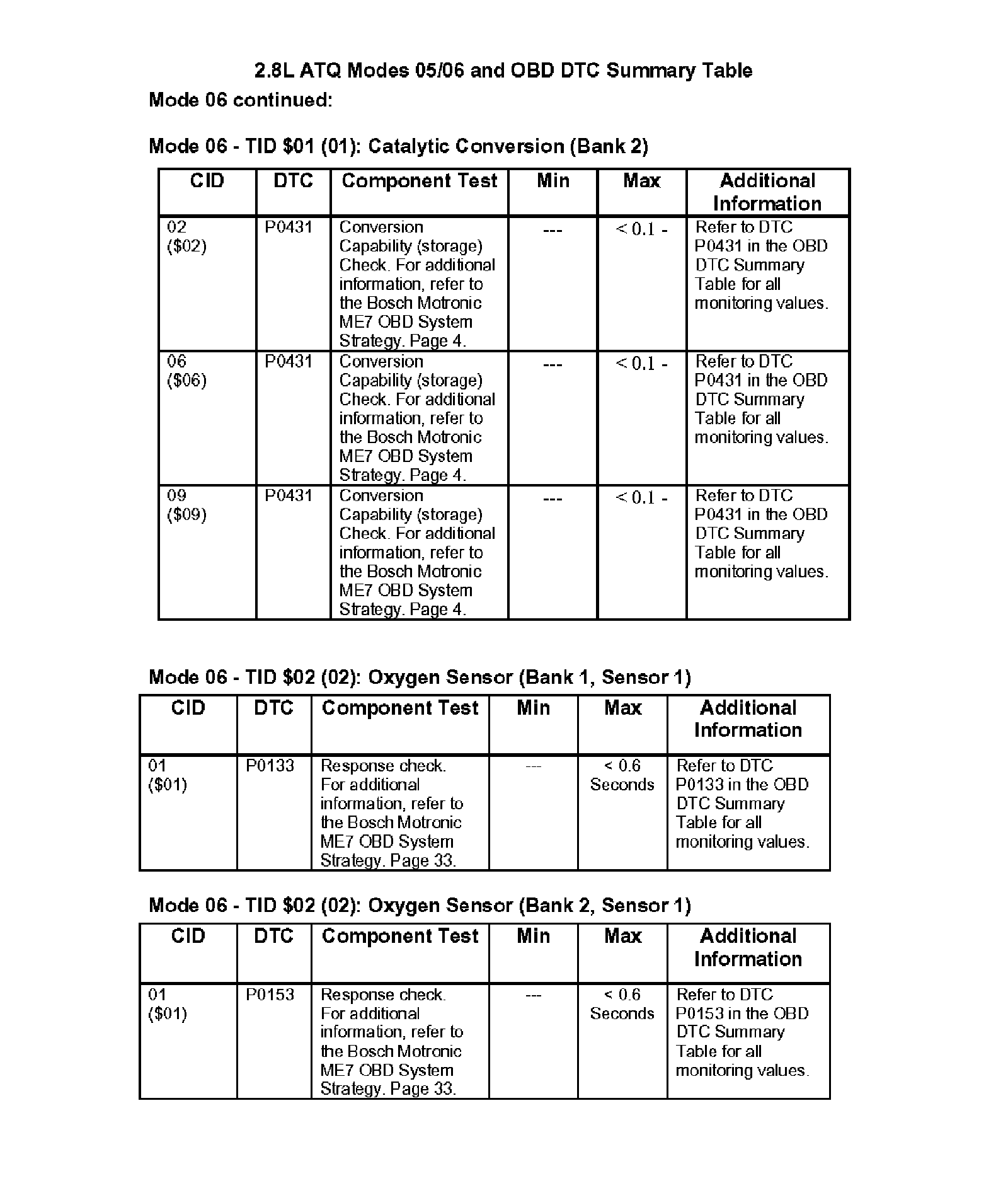 Modes 05/06 and OBD DTC Summary Table