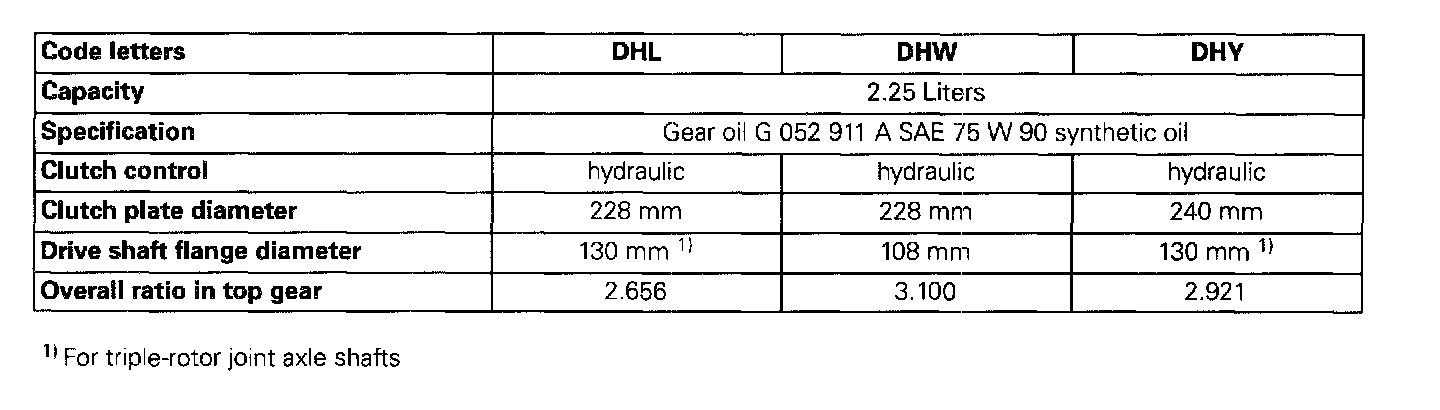 012/01W Manual Transmission Capacity Code Letters DHL, DHW, DHY: