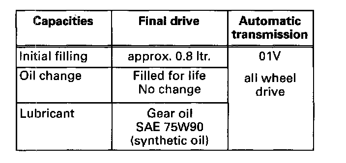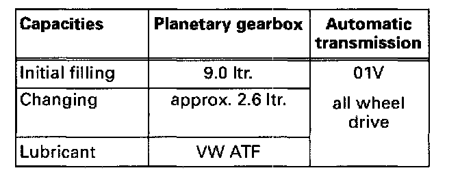 Note: VW ATF (available as a replacement part) is the only ATF that can be used in the all wheel drive automatic transmission 01V.