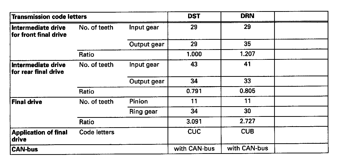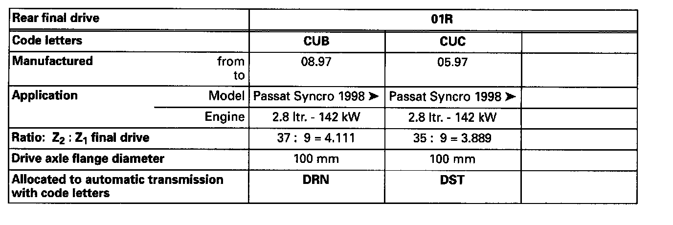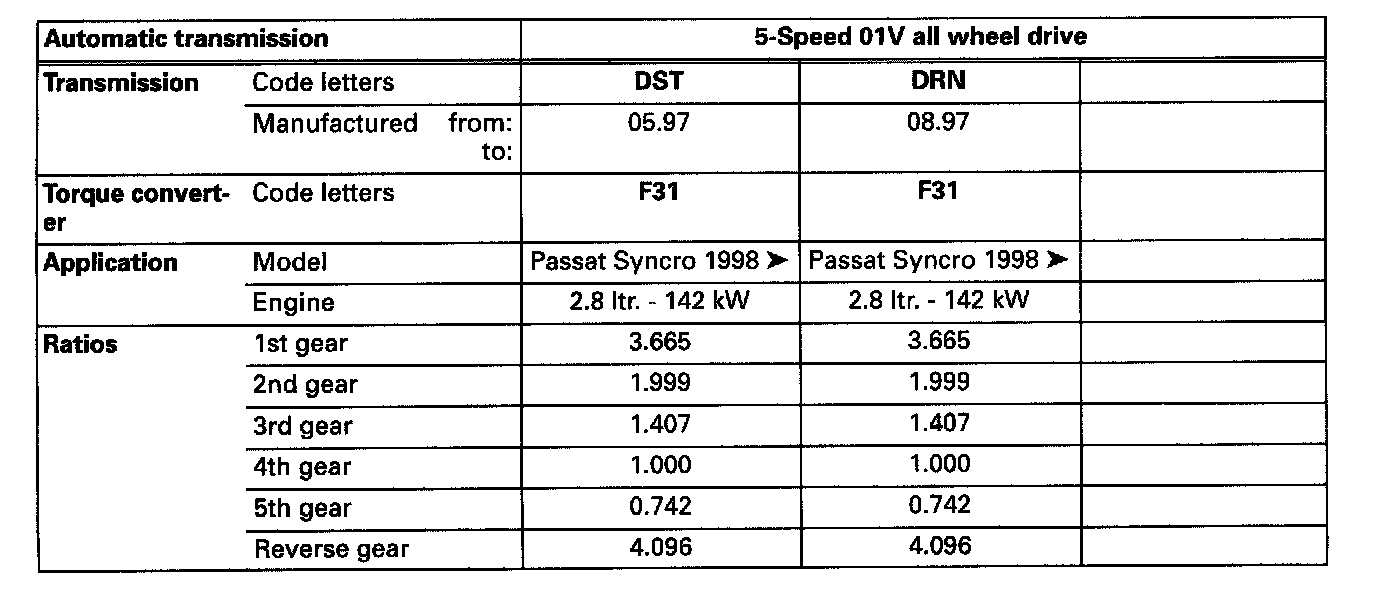 01V Automatic Transmission Code Letter DST, DRN: