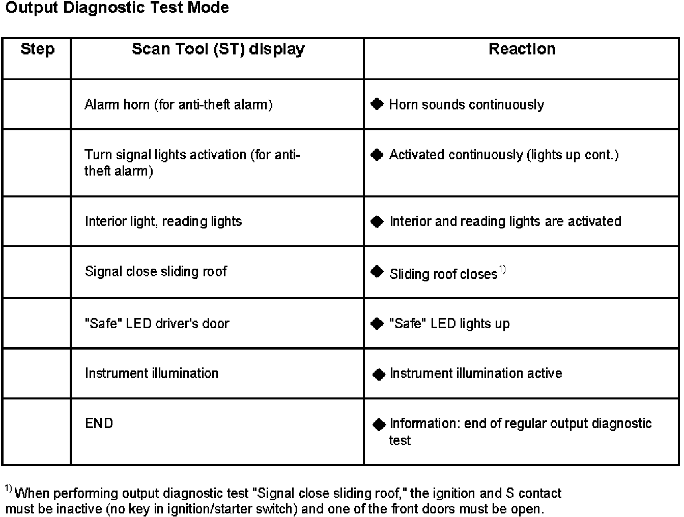 - The components displayed in the Output Diagnostic Test Mode can differ depending upon the equipment. For example on vehicles without ATA there will be no step "1" as listed in the table below.