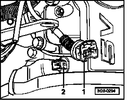 - Remove 2-pin harness connector -1- to the respective Valve -2- for camshaft adjustment: