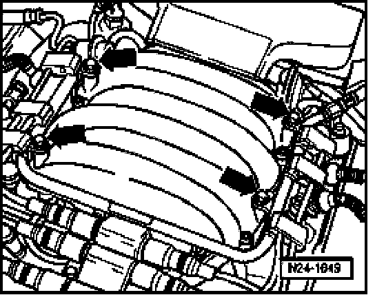 - Unscrew fuel rail from intake manifold (arrows).