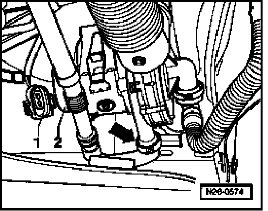 - Disconnect 2-pin connector -1- from Secondary Air Injection (AIR) Pump Motor -V101- -2-.