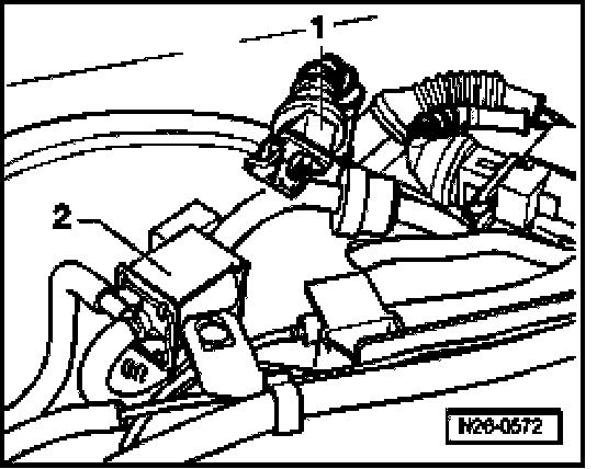 - Disconnect 2-pin connector -1- from Secondary Air Injection (AIR) Solenoid Valve -N112- -2-.