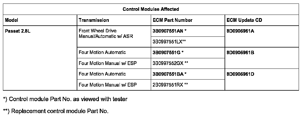 The following "Update - Programming" (flashing) process may overwrite any "TUNED" ECM programming. A "TUNED" ECM is described as any ECM altered so as to perform outside the normal parameters and specifications approved by Volkswagen of America, Inc.