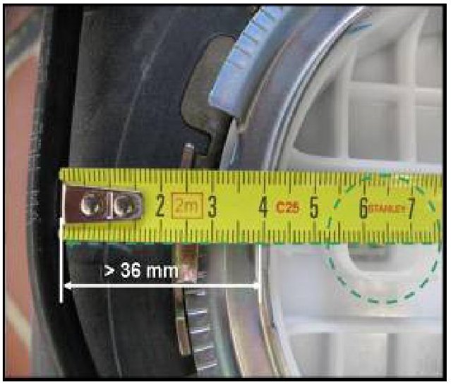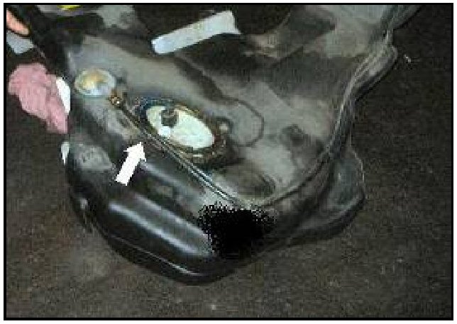 - Using measuring tape centered over electrical connector -dotted circle-, measure distance between vent line and fuel sender retainer ring -arrow-, it should be at least 36mm