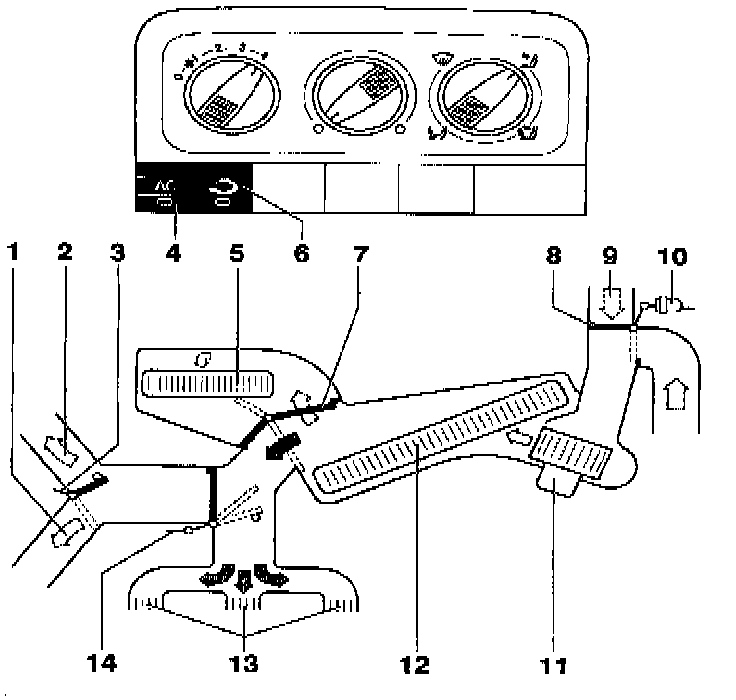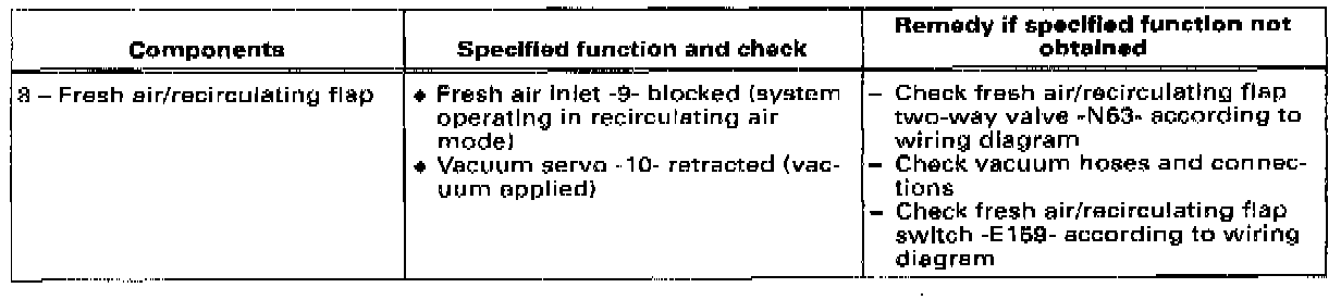 - Fresh air/recirculating flap switch -E159- (-6-) ON