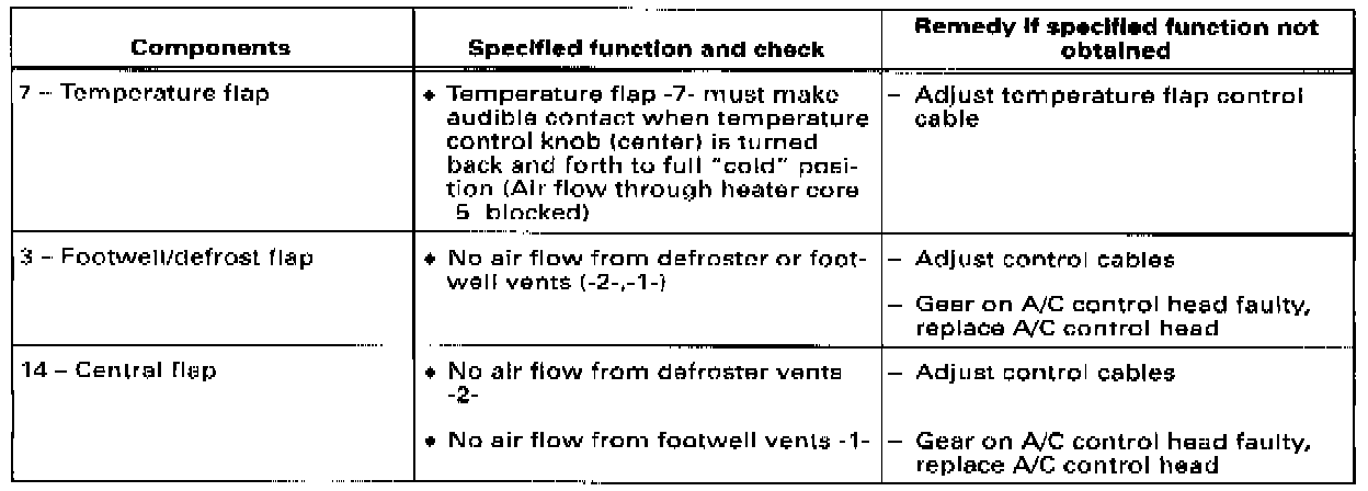- Once above tested components check OK, check A/C system cooling performance. Numbers for components in these tables correspond with numbers assigned to components in Fig. 1, above.