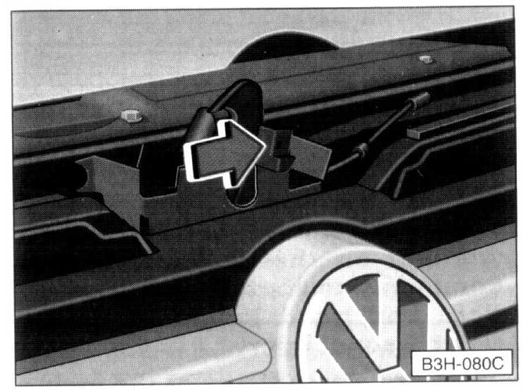 To open, lift the engine hood slightly. Pull the release lever in the direction indicated (see illustration). This will release the hook under the hood.