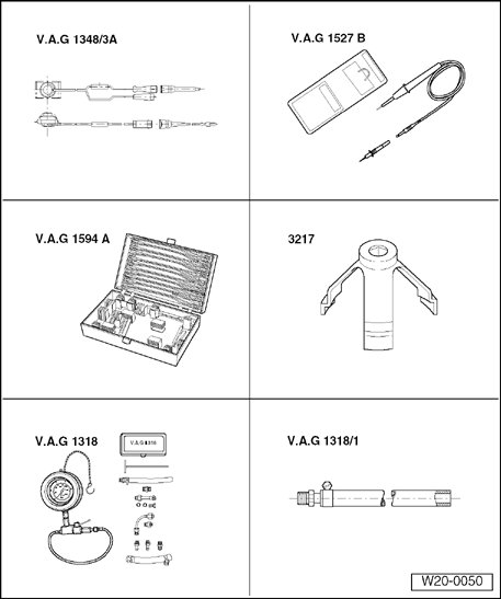 - Connect V.A.G 1318 pressure gauge with V.A.G 1318/10 adapter to hose.