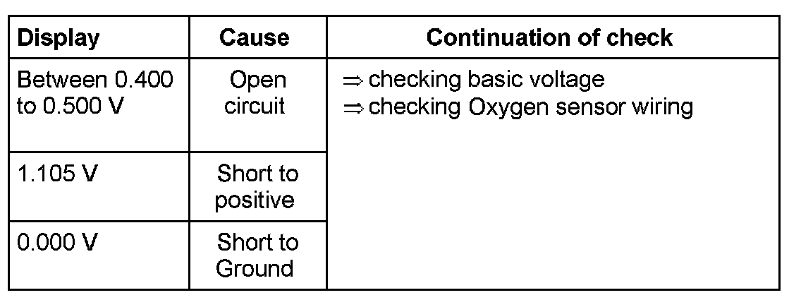 - Check Oxygen sensor voltage in display zone 2. Voltage must fluctuate at least 20 times per minute in range of 0 to 1.0 V.