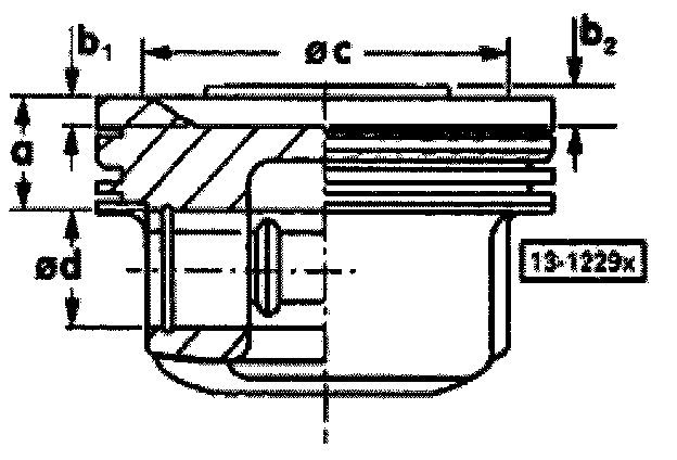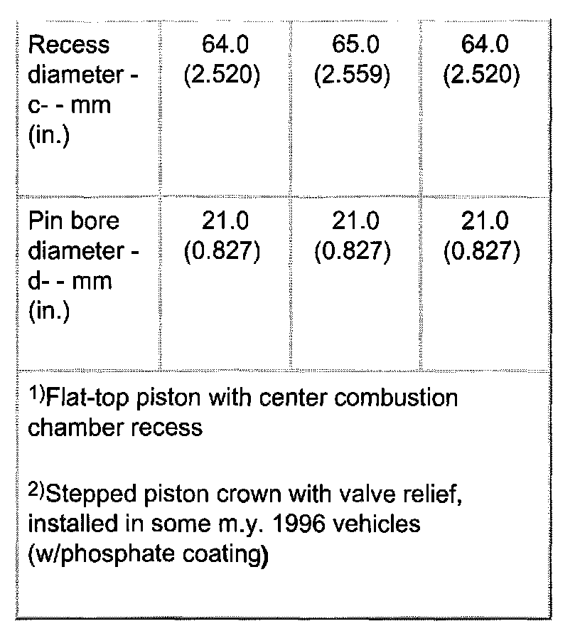 1) Stepped piston crown with valve relief, installed in some m.y. 1996 vehicles.