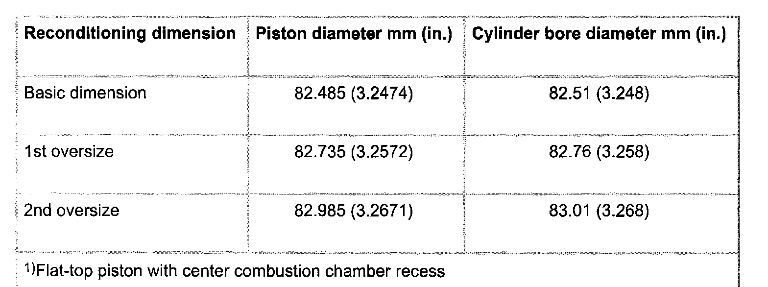 Piston And Cylinder Dimensions 08.95-07.96 1)