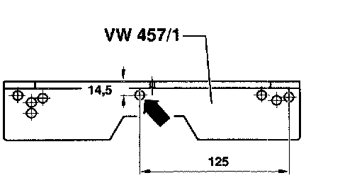 - Drill a 8.5 mm (11/32 inch) diameter hole -arrow- in support rail VW 457/1.