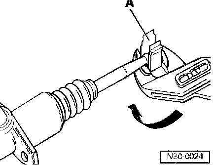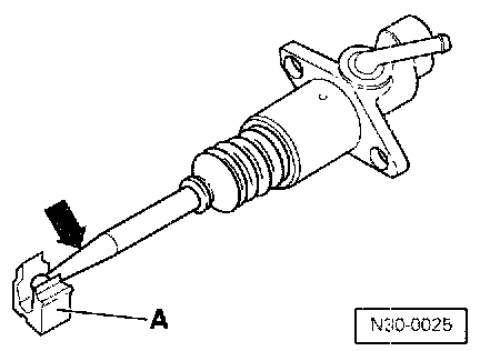 Fig. 2 Press master cylinder operating rod into retainer -A- in direction of arrow