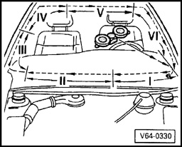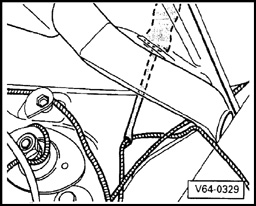 - Push cutting cord through adhesive sealant into vehicle interior using Awl V.A.G 1474/2. Cutting cord is doubled up to windshield wiper axle.
