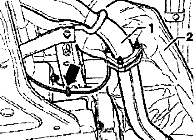 ^ Remove heat shield -2- for exhaust system, loosen exhaust system if necessary.