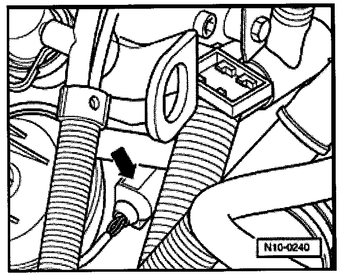 - Disconnect 4-pin connector from Engine Coolant Temperature (ECT) sensor -G62- with Engine Coolant Temperature (ECT) sensor -G2- (arrow)