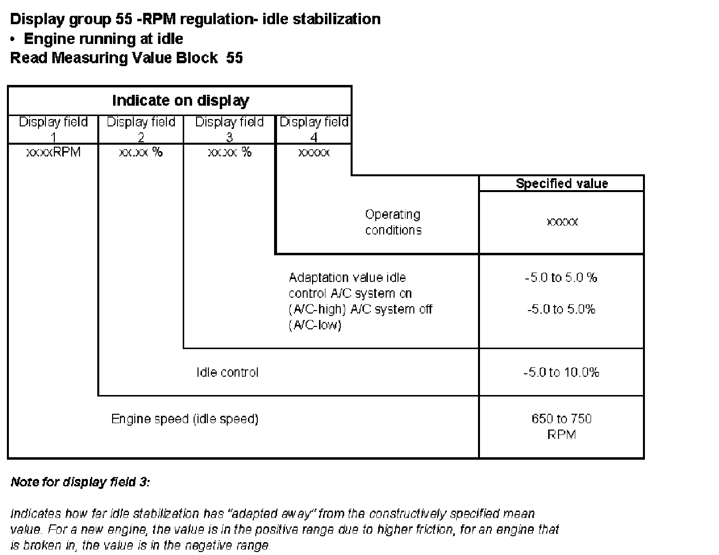 Display group 55 -RPM regulation- idle stabilization