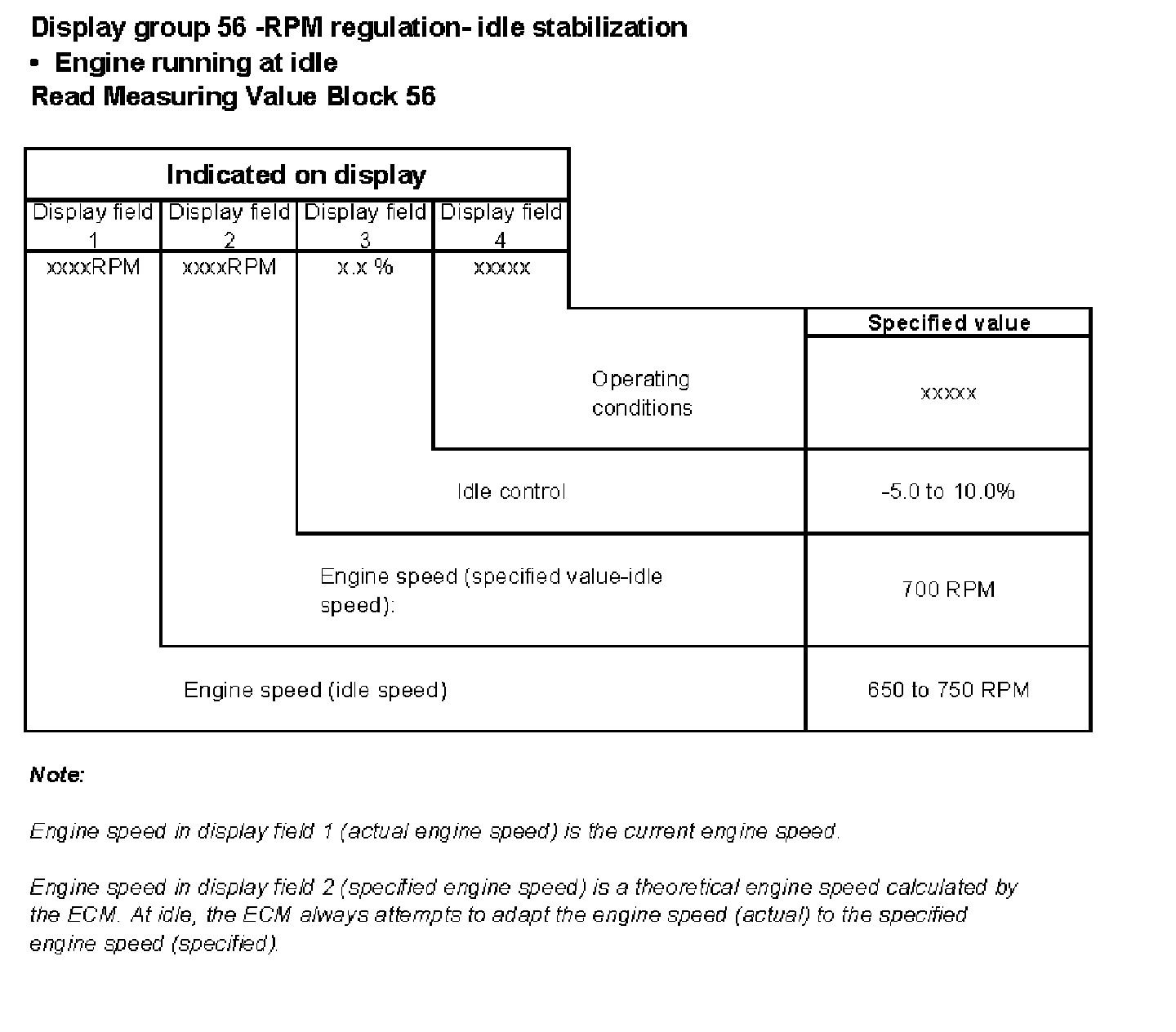Display group 56 -RPM regulation-idle stabilization