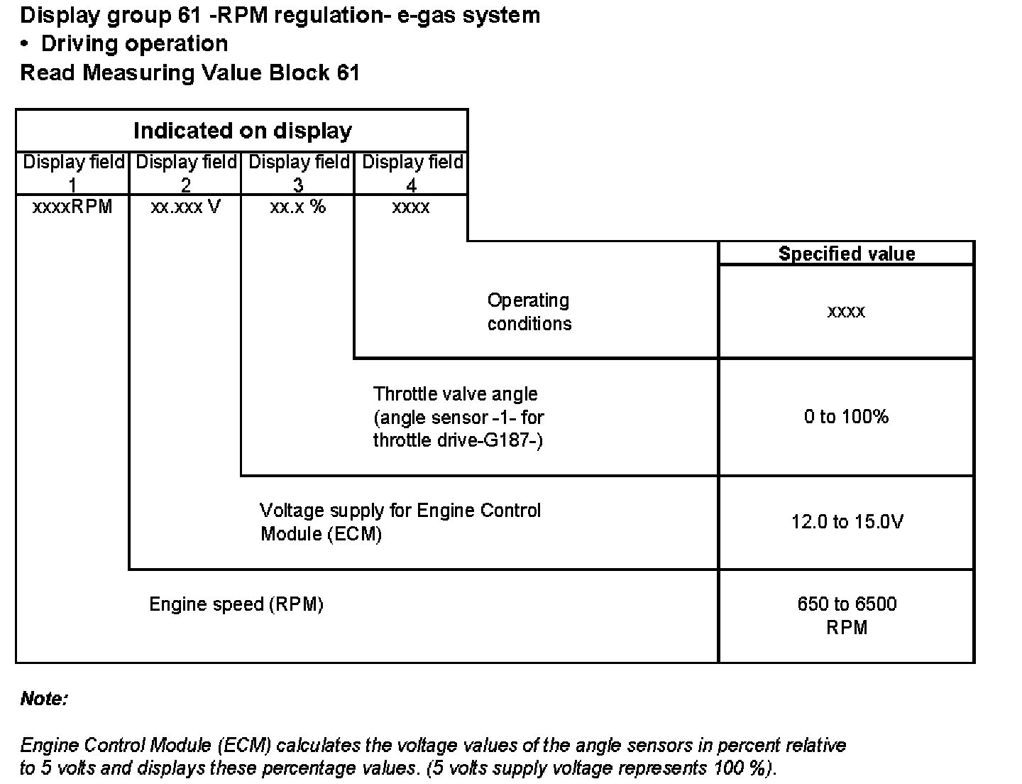 Display group 61 -RPM regulation- e-gas system