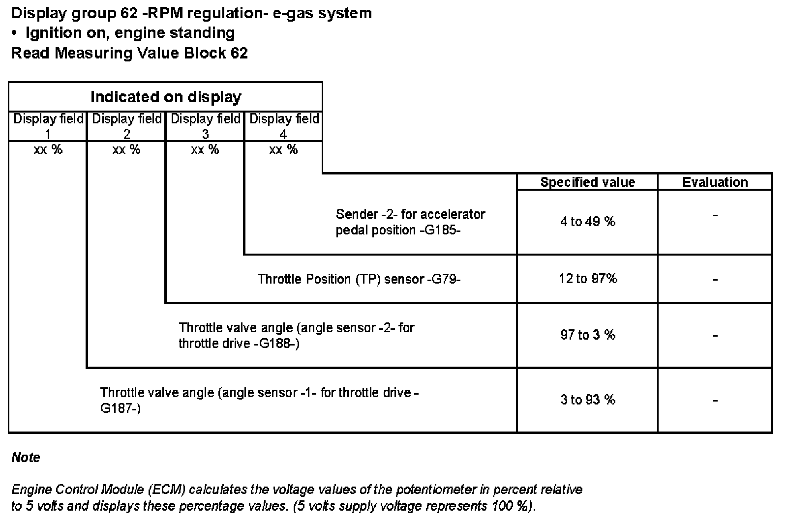 Display group 62 -RPM regulation- e-gas system