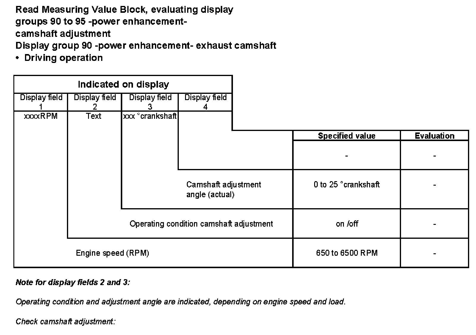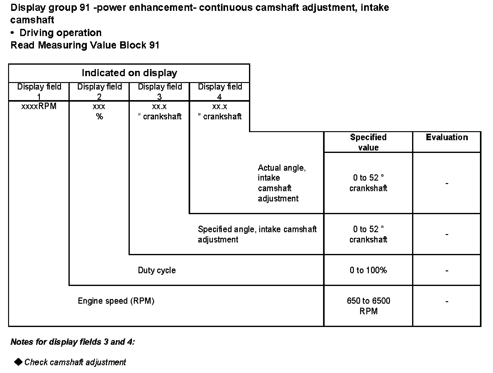 Display group 91 -power enhancement- continuous camshaft adjustment, Intake camshaft