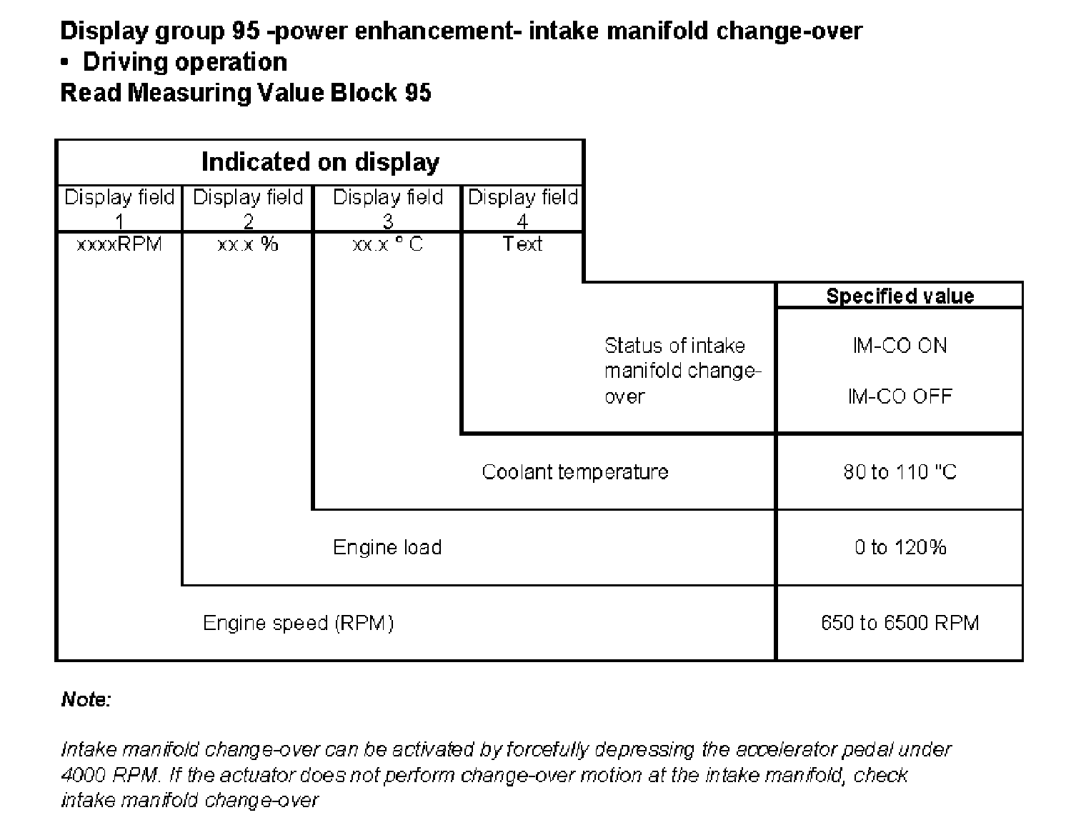 Display group 95 -power enhancement- Intake manifold change-over
