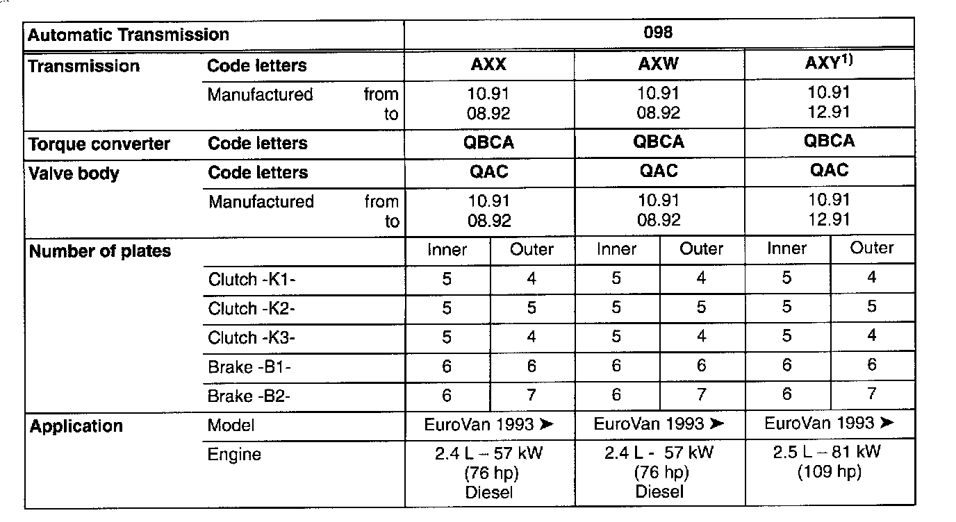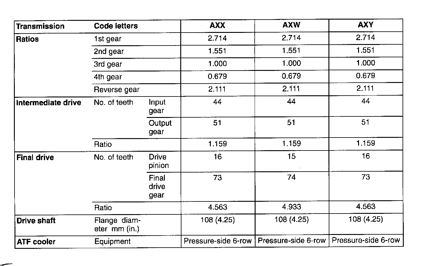 automatic Transmission Code Letter AXX, AXW, AXY: