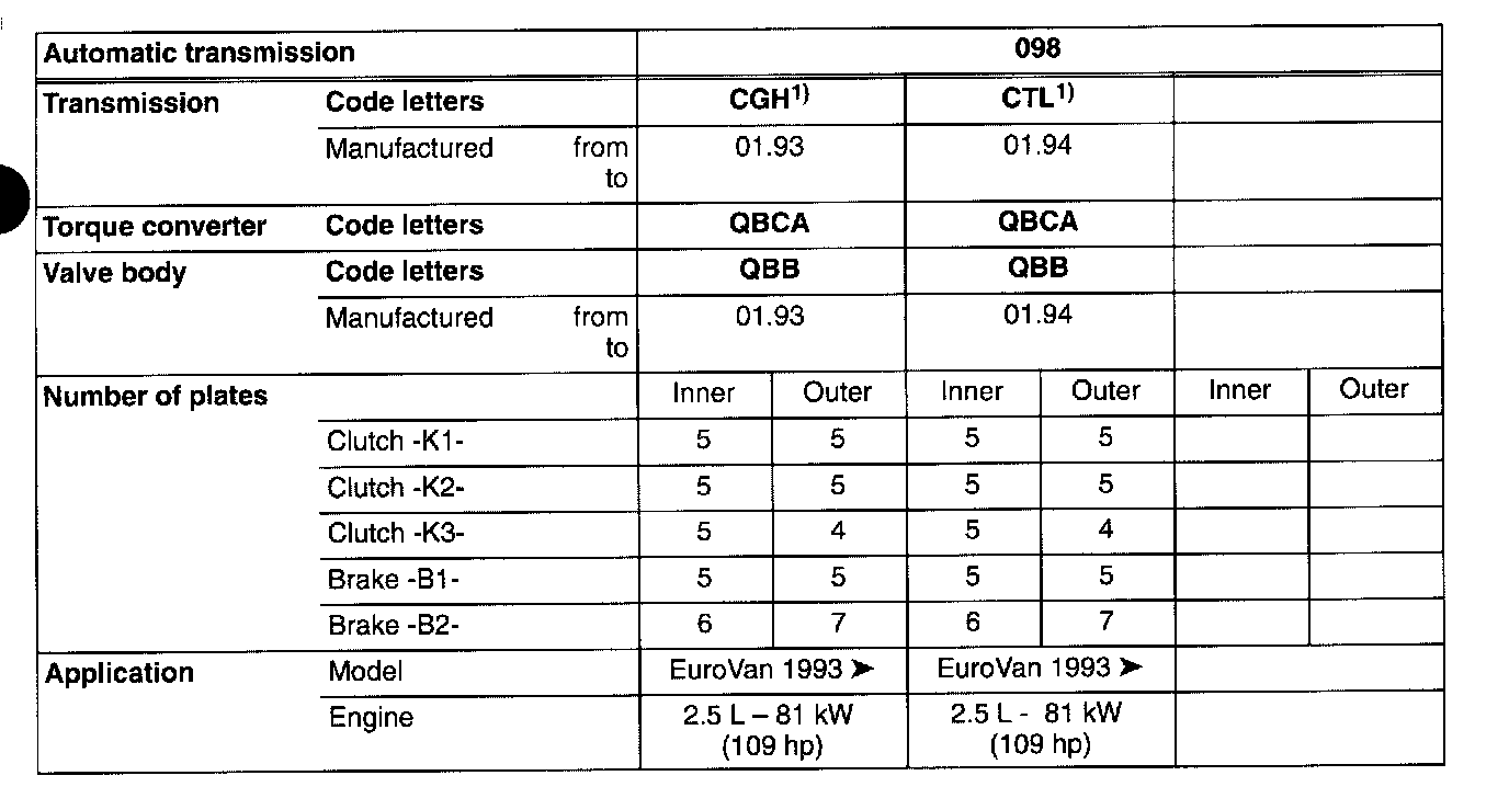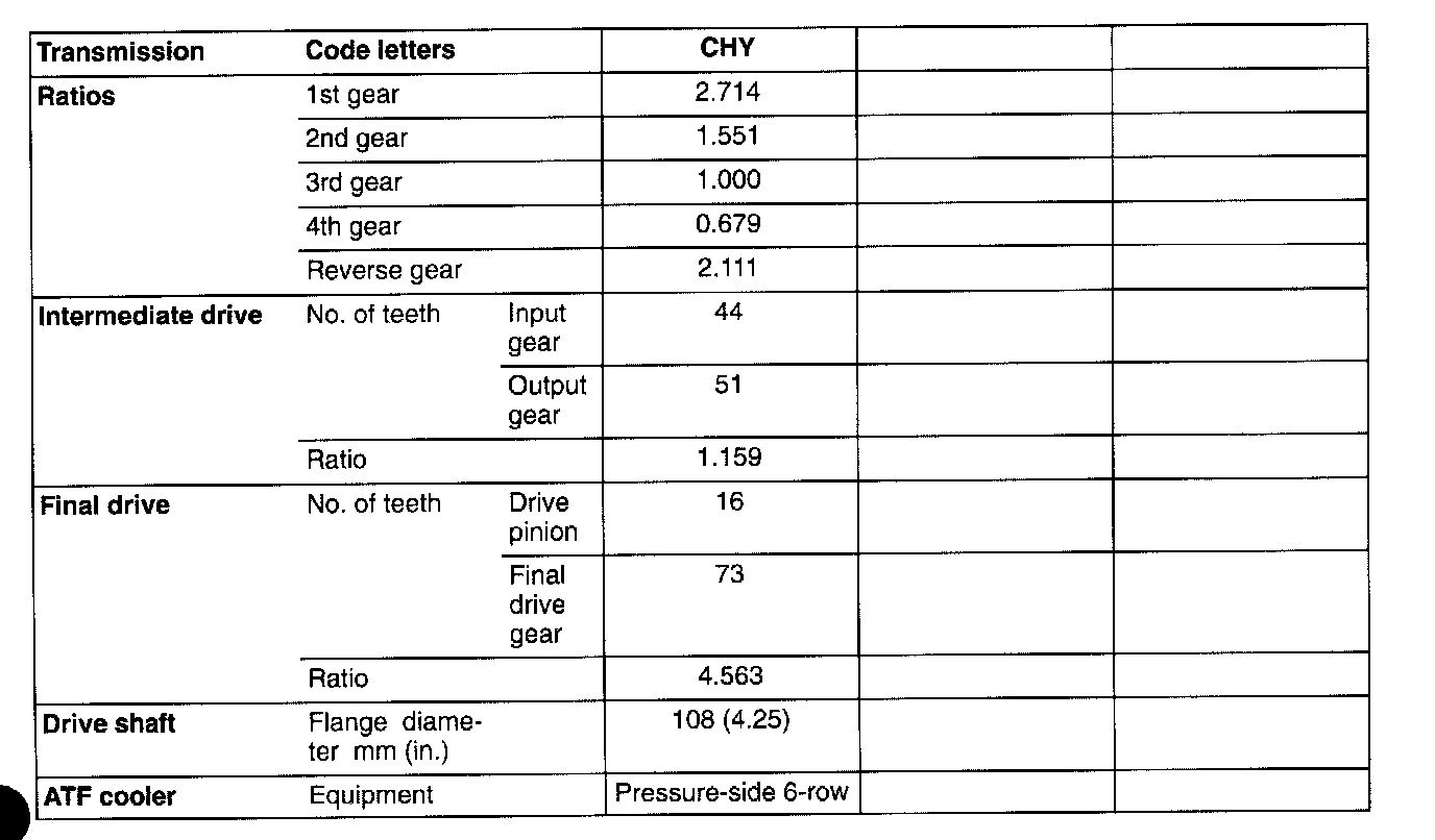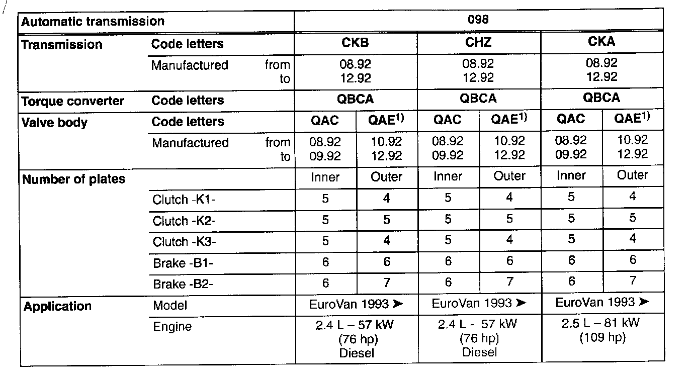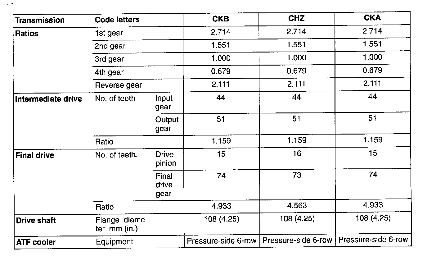 Automatic Transmission Code Letter CKB, CHZ, CKA: