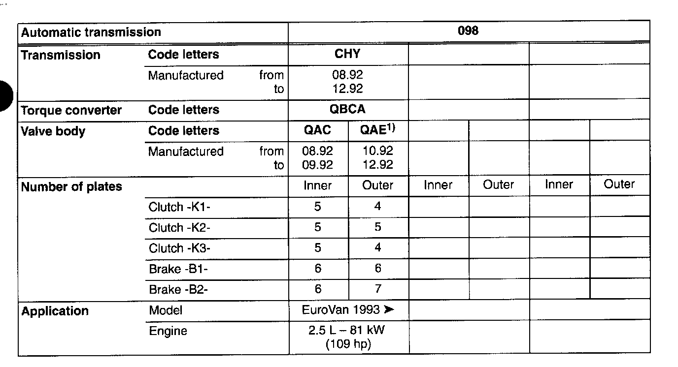 1) From transmission build date 01 10 2, the valve body QAE can be installed if wiring is effected by a conductor strip.