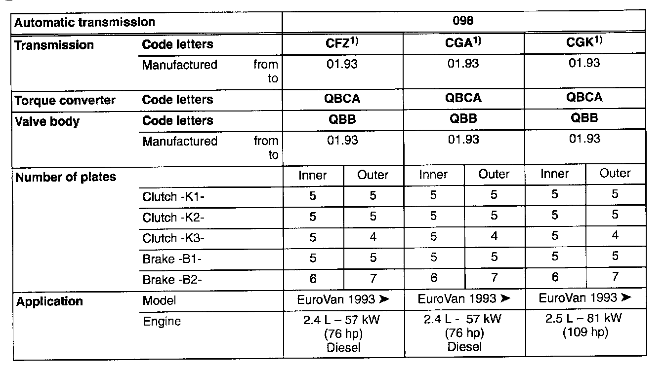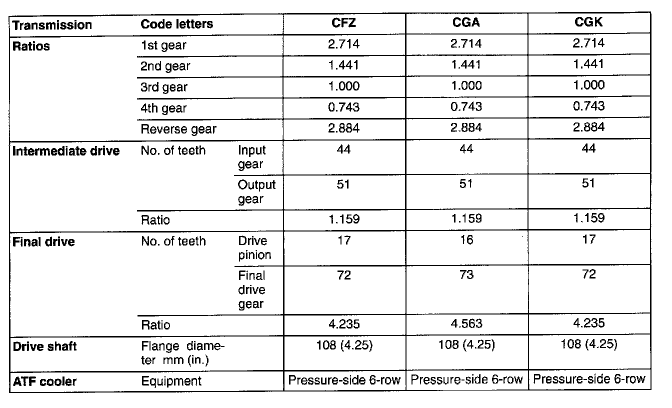 Automatic Transmission Code Letter CFZ, CGA, CGK: