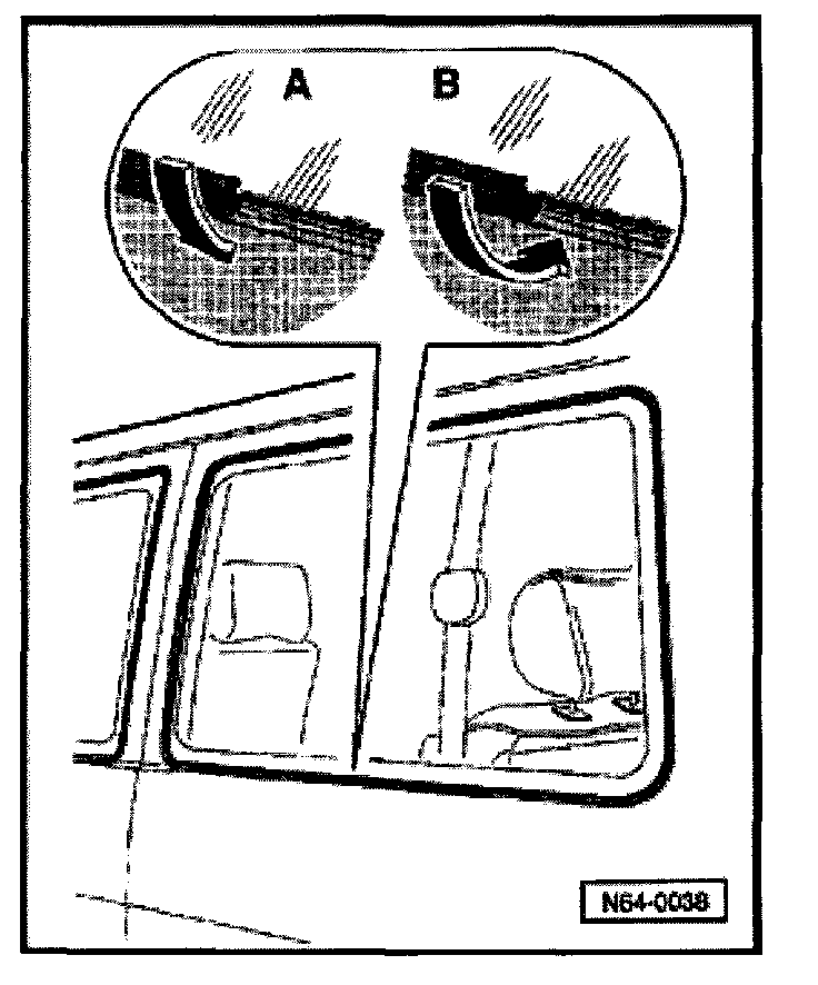 - Place repair molding in middle lower area -arrow A- and fasten along window opening -arrow-.