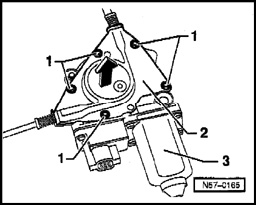 - Remove window regulator - 2 - in direction of arrow from regulator motor - 3 -.