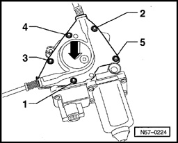 - Remove bolt -1 - from window regulator / window regulator motor.