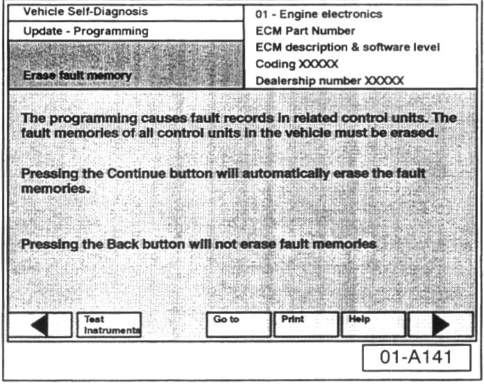 Failure to erase ALL fault memories may cause "Update - Programming" (flashing) procedure to fail!