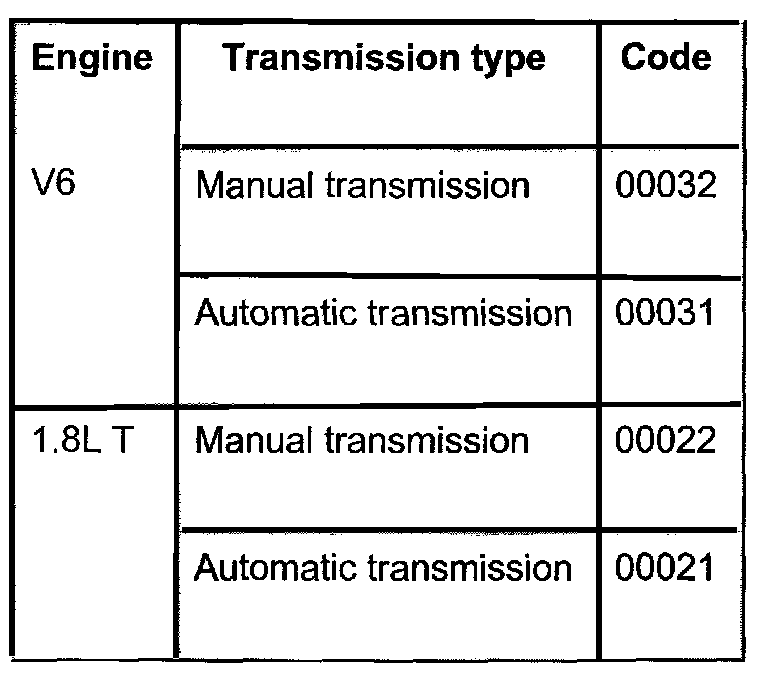 Coding table for ASR control modules without CAN-bus