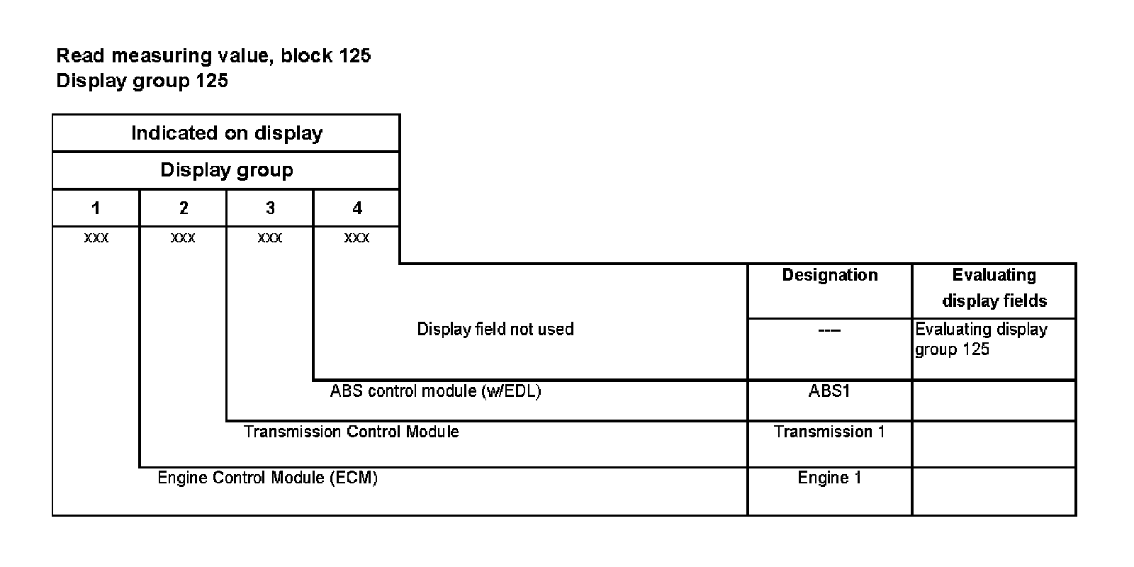 - Display fields in display groups 125 to 127 provides the CAN-Bus function status codes of various control modules connected to the vehicle CAN-Bus network.