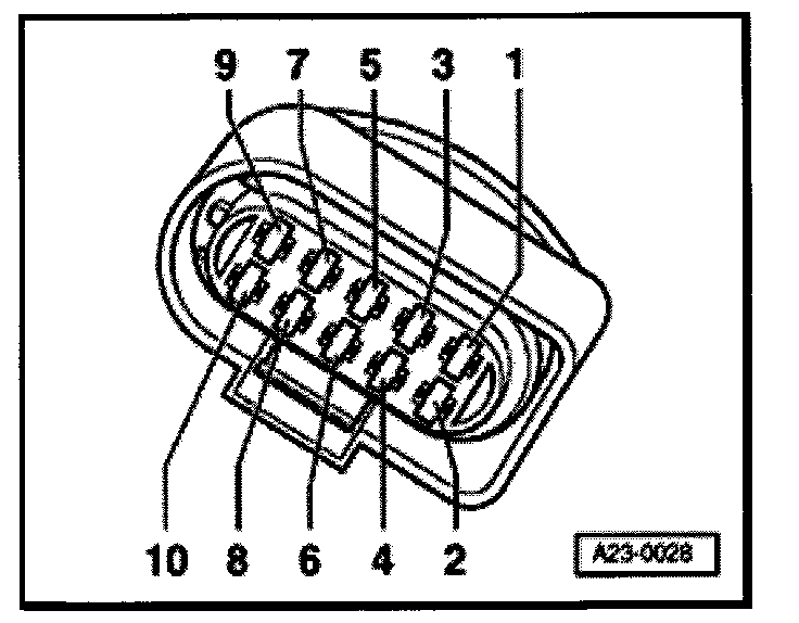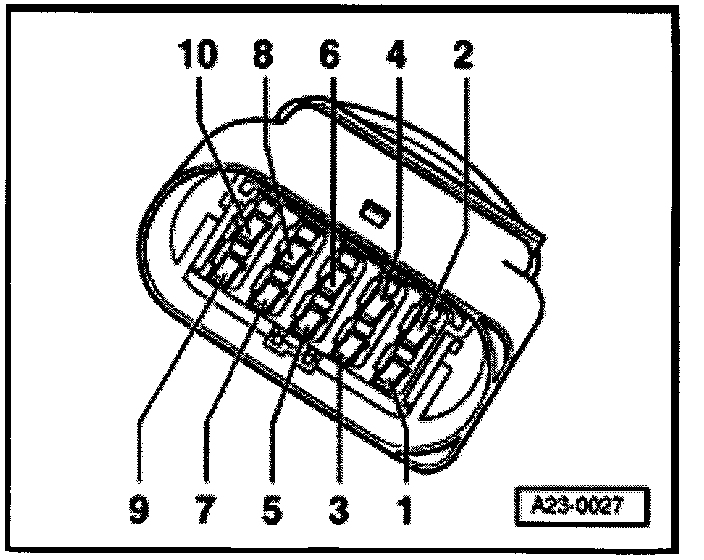 - Using adapter cables from VAG1594 connector test kit, connect multimeter for resistance measurement between test box and 10-pin connector: