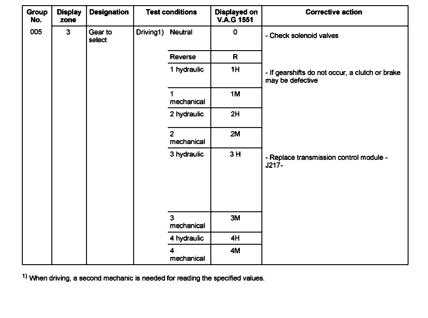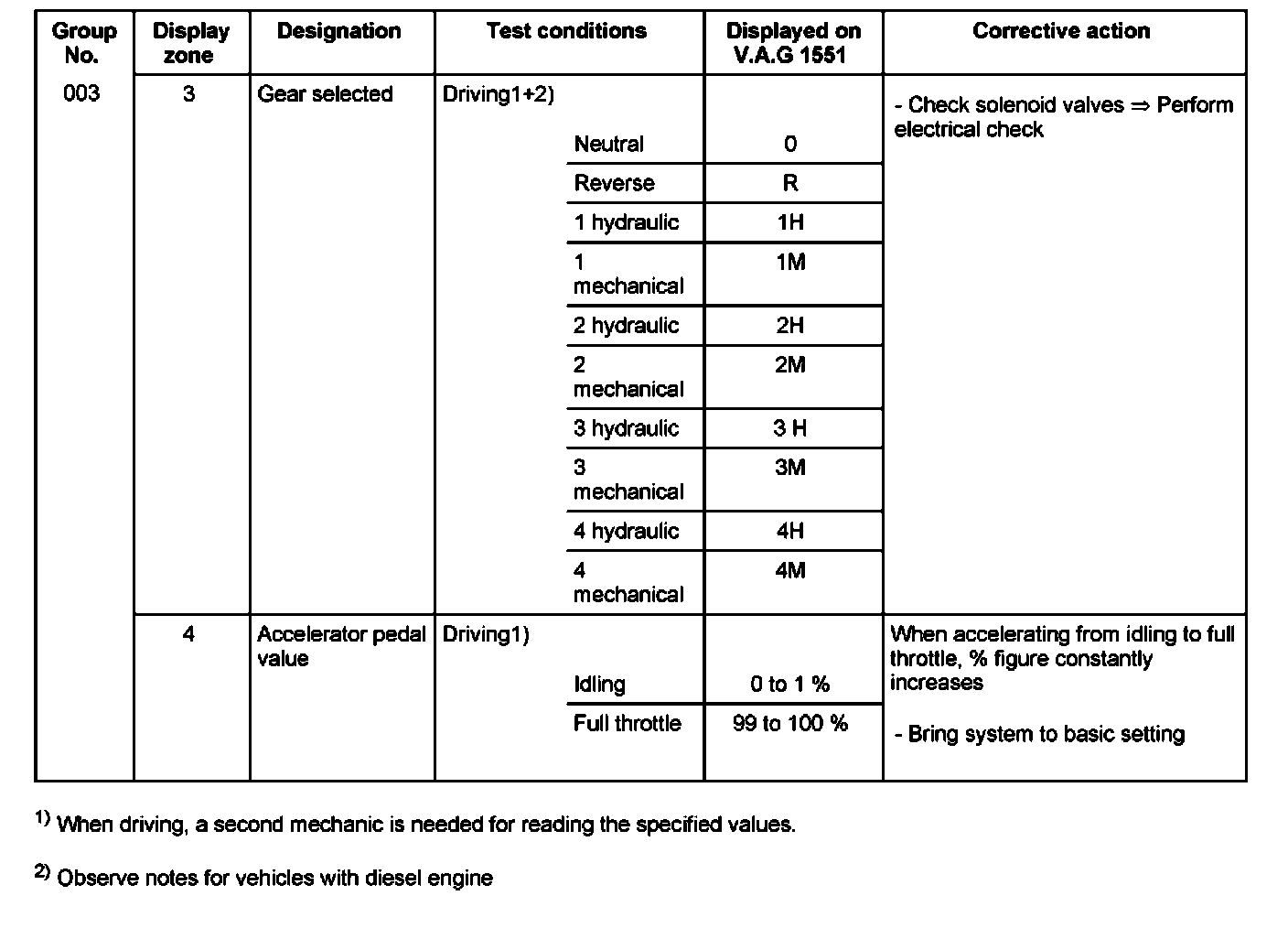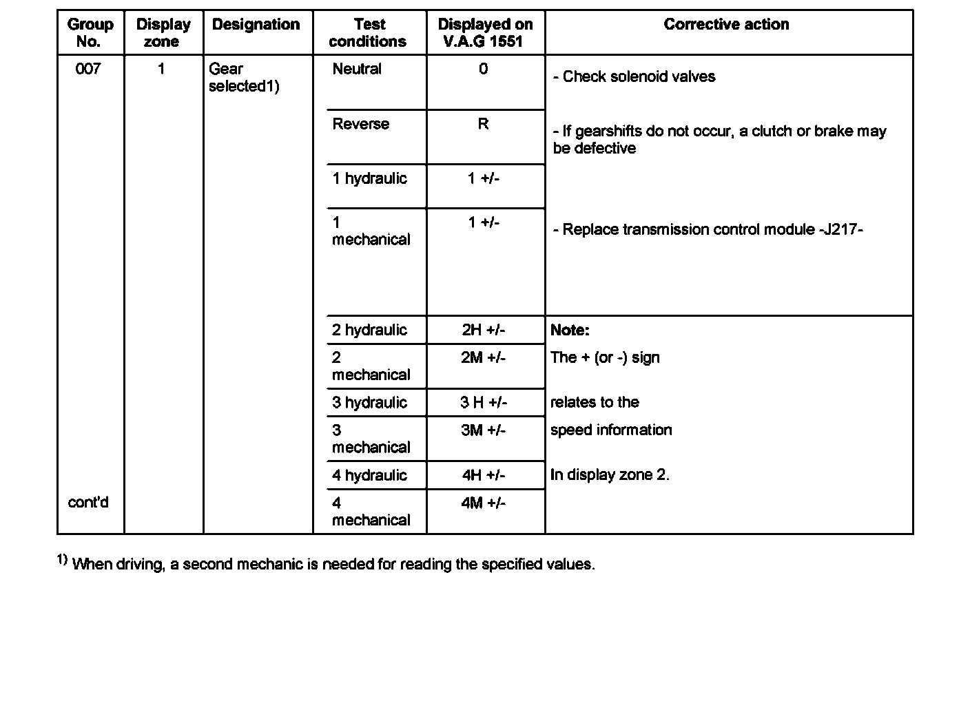 1)While driving with gears selected a second mechanic is required for reading the specified values.