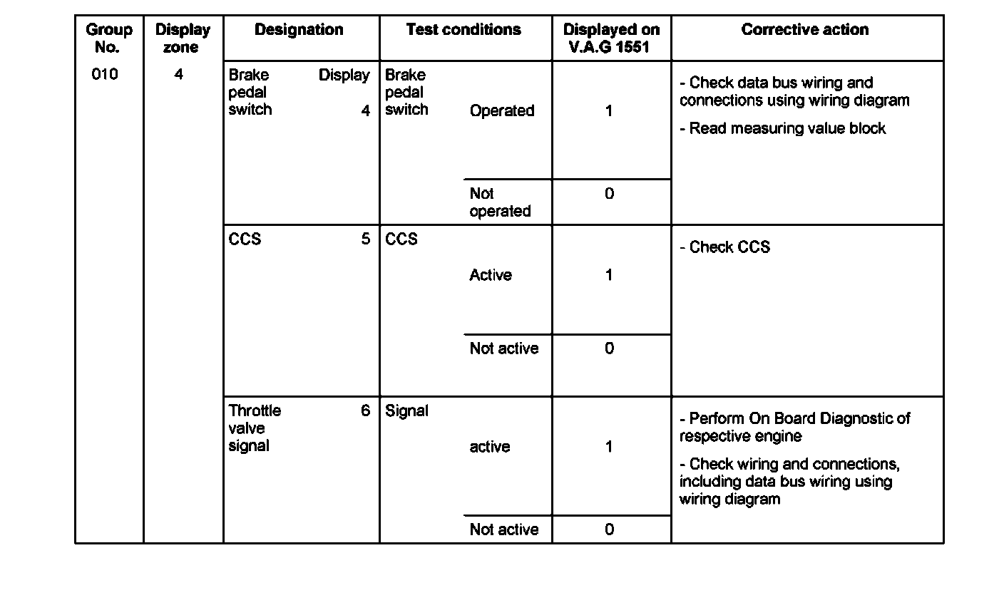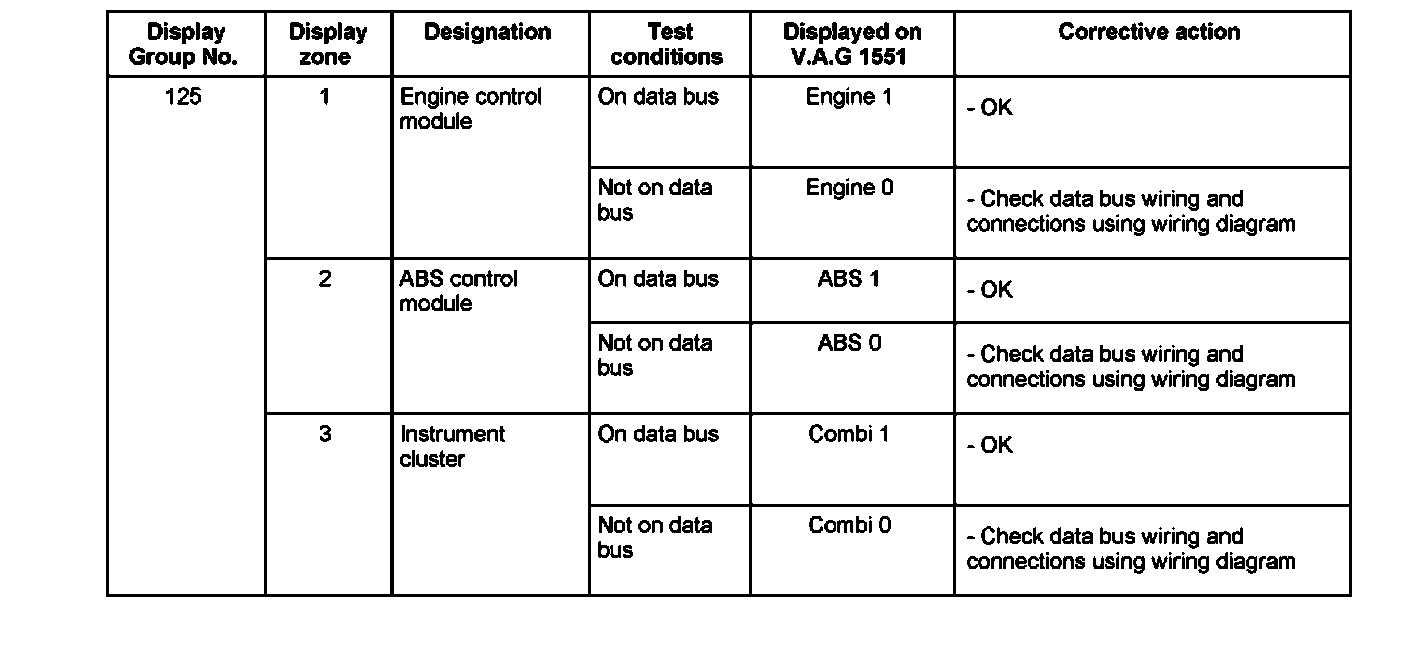 2)V.A.G. 1551 must always show the same number "1" or "0" in displays 1 and 2. Disregard on vehicles with data bus!