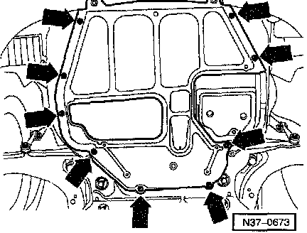 - Remove noise insulation panel (arrows).