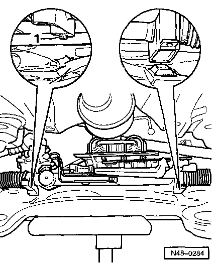 - Place VAG1383A engine/transmission jack with VAG1359/2 under subframe.