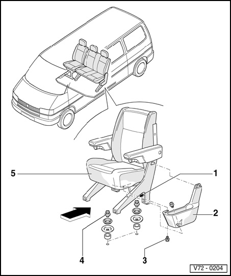 - Removing: Pull locking lever - 1 - upward, pull seat or bench seat off bolts in direction of arrow.