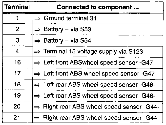 ABS Control Module Connector Pin Identification (Part 2 Of 2):