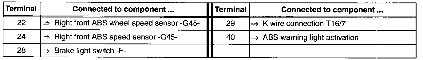 T40 Wiring Harness/ABS Control Module Connector Assignment