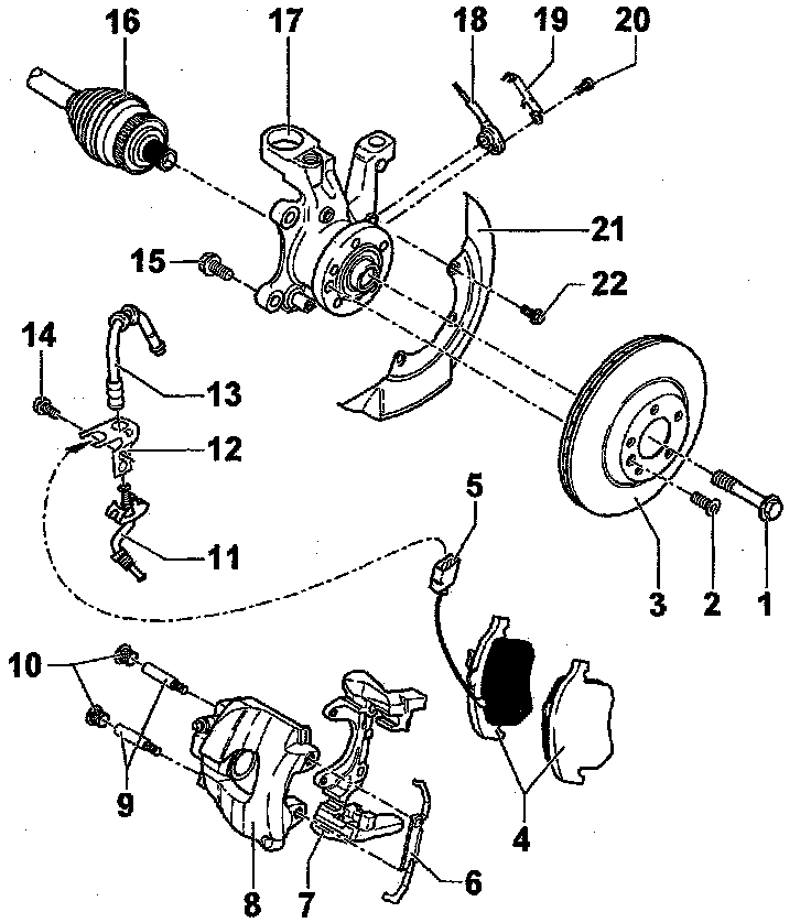 ^ After servicing calipers, depress brake pedal firmly several times with vehicle stationary so that the brake pads are properly seated in their normal operating position.