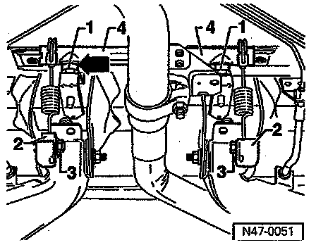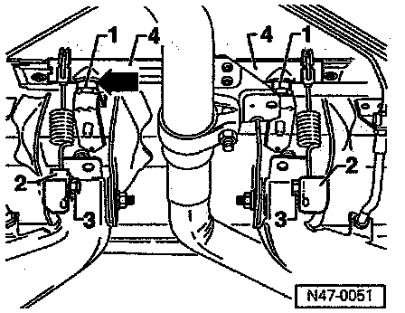 ^ It is only necessary to adjust the position of the second spring mounting -2- if the horizontal beam 4- is excessively inclined (more than 4 mm, refer to arrows).